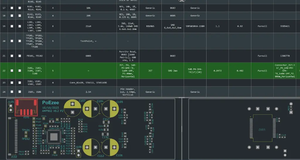 500 références classées en base de données connectée à KiCad et bientôt Altium.